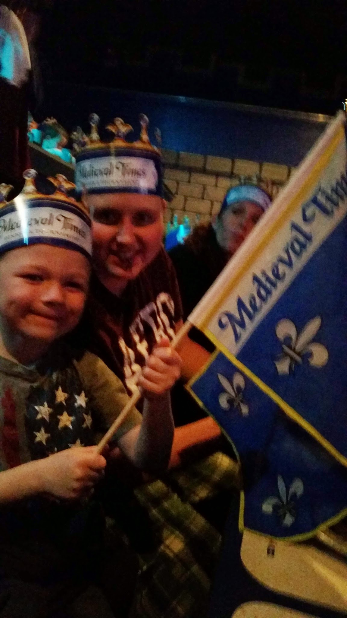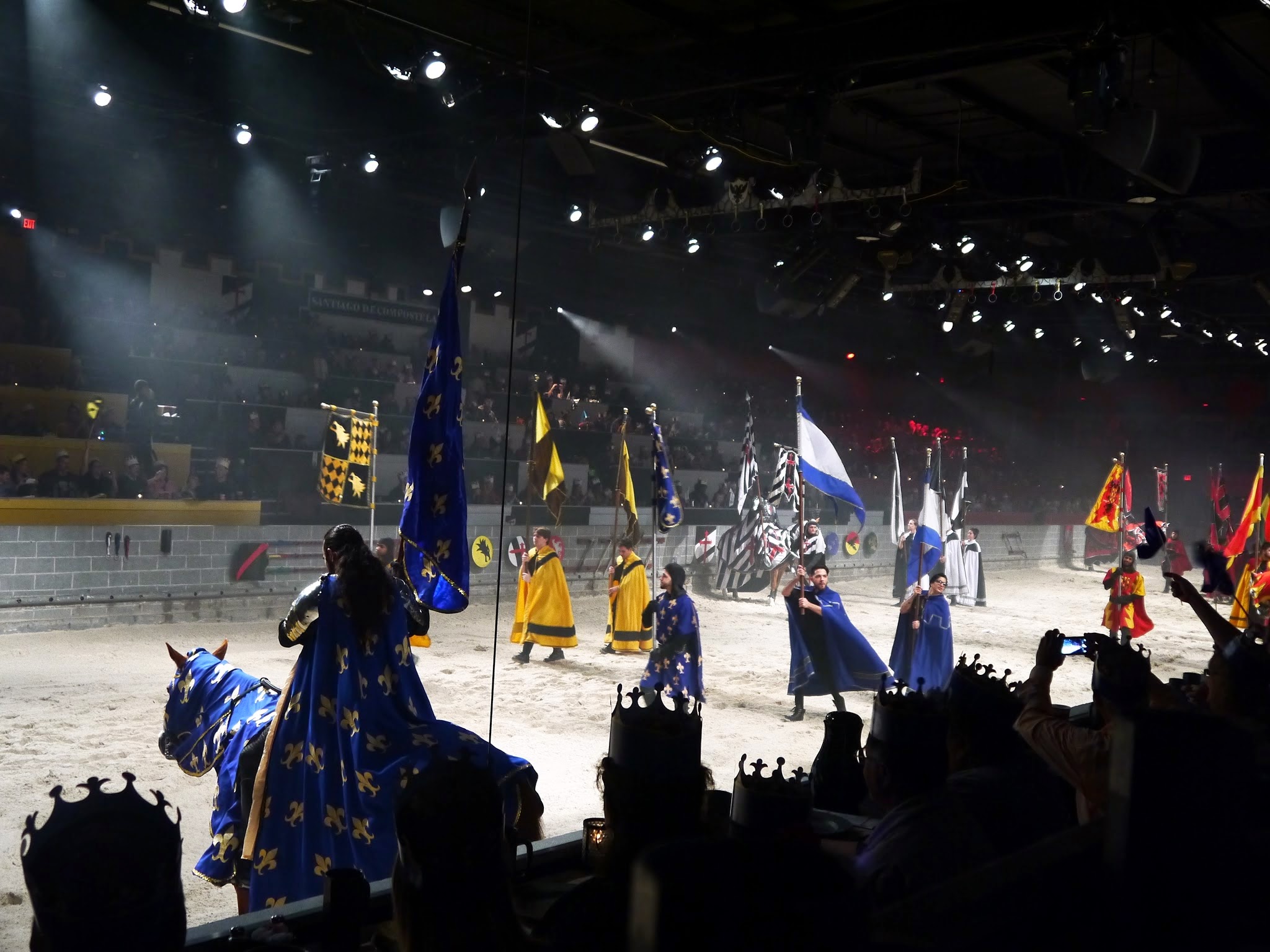 They also provide some fun flags to cheer your knights on. When seated into the arena you are directed to a color pertaining to the knight you will be cheering on for the evening. We were seated in the BLUE knight’s realm.